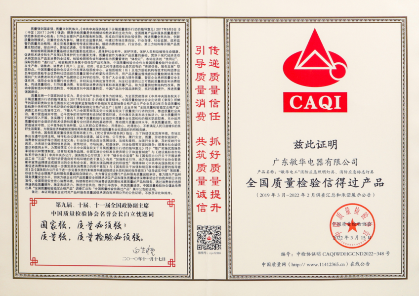 敏华先后荣获广东省名牌产品、广东省高新技术产品、中国质量检验协会理事单位、中国消费品质量安全促进会理事单位、中国LED照明灯饰灯业100强企业、行业十大民族企业、应急灯单品冠军、十大智能疏散品牌、行业领袖品牌、中国电工十大知名品牌、中国房地产开发企业500强消防应急照明和疏散指示系统类首选供应商、中国房地产供应商行业竞争力十强等殊荣。持续引领行业向更安全高效、更节能环保的方向铿锵前行,为节能减排,助力碳达峰、碳中和目标的如期实现,积极履行企业的社会责任和时代担当。