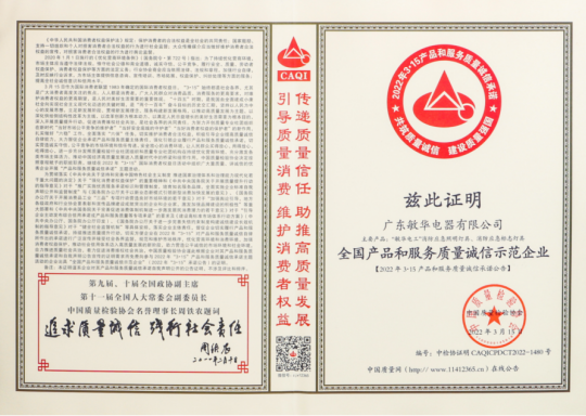 在2022年“3.15”国际消费者权益日“产品和服务质量诚信承诺”主题活动中,敏华凭借卓越的品质和热忱的服务,再次荣获“全国产品和服务质量诚信示范企业”、“全国产品和服务质量诚信领先品牌”、“全国质量检验稳定合格产品”、“全国质量检验信得过产品”等一系列殊荣。