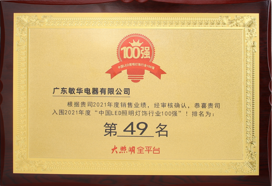 在这个具有特殊意义的日子里,“2021中国LED照明灯饰行业100强”迎来了荣耀揭榜的时刻!敏华电器凭借2021年优异的销售业绩,再一次荣登“百强榜”,又一次印证了广大客户对敏华品牌和产品的高度认可!再次用实力诠释了敏华电器在消防应急照明和疏散指示系统行业的龙头地位!