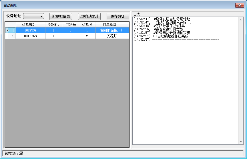 5.在上位机中选择“自动分配地址”,选择“UID自动编址”,上位机即可自动读取该列表上的灯具信息。