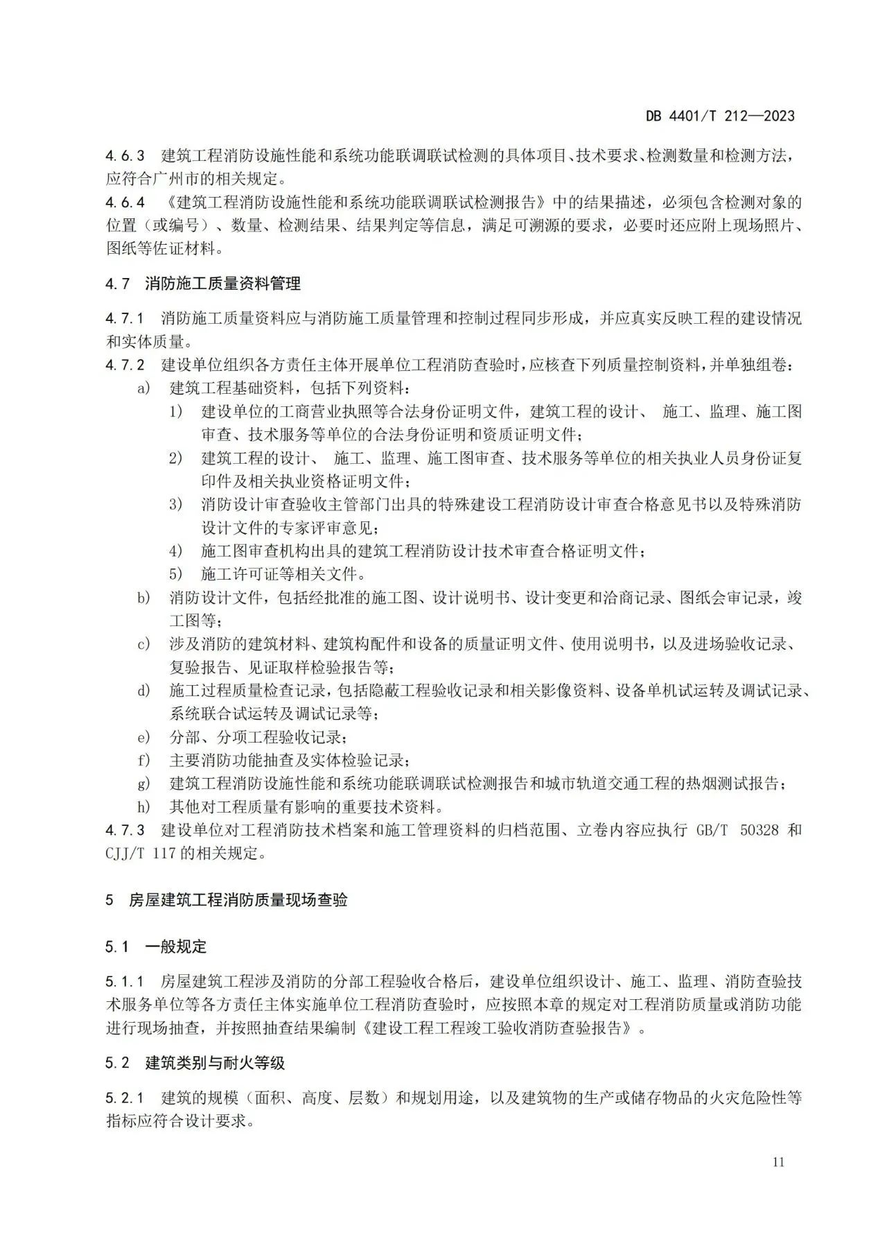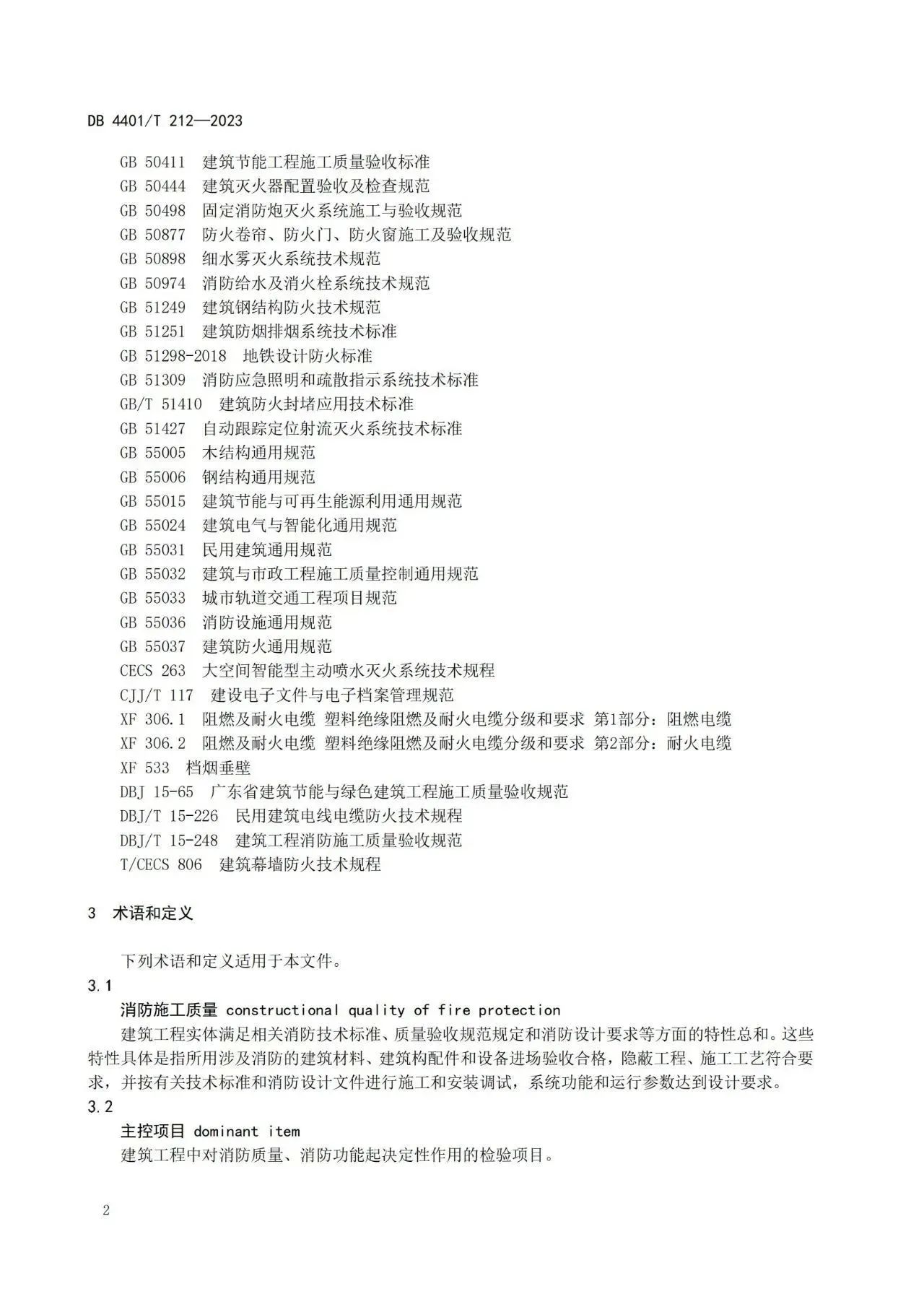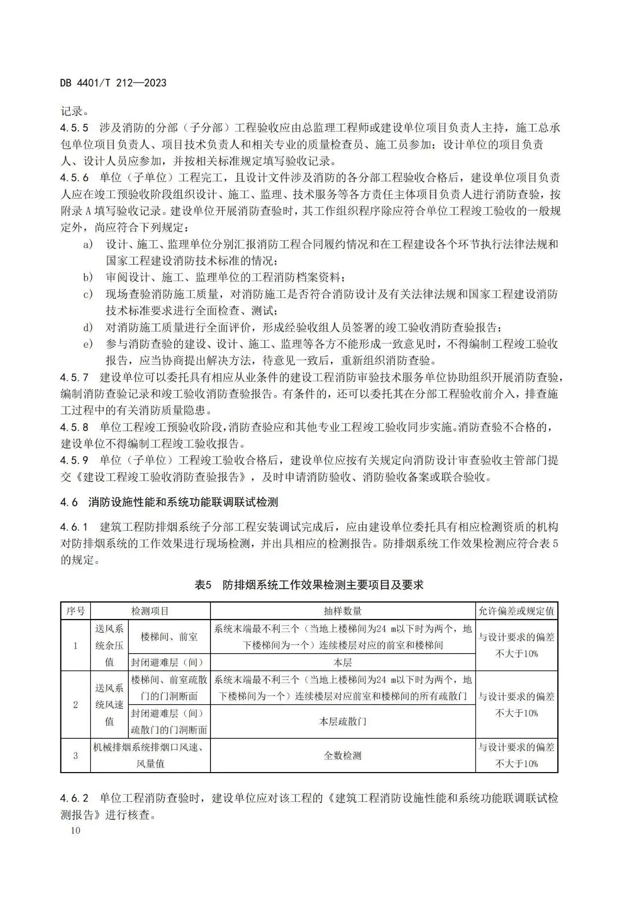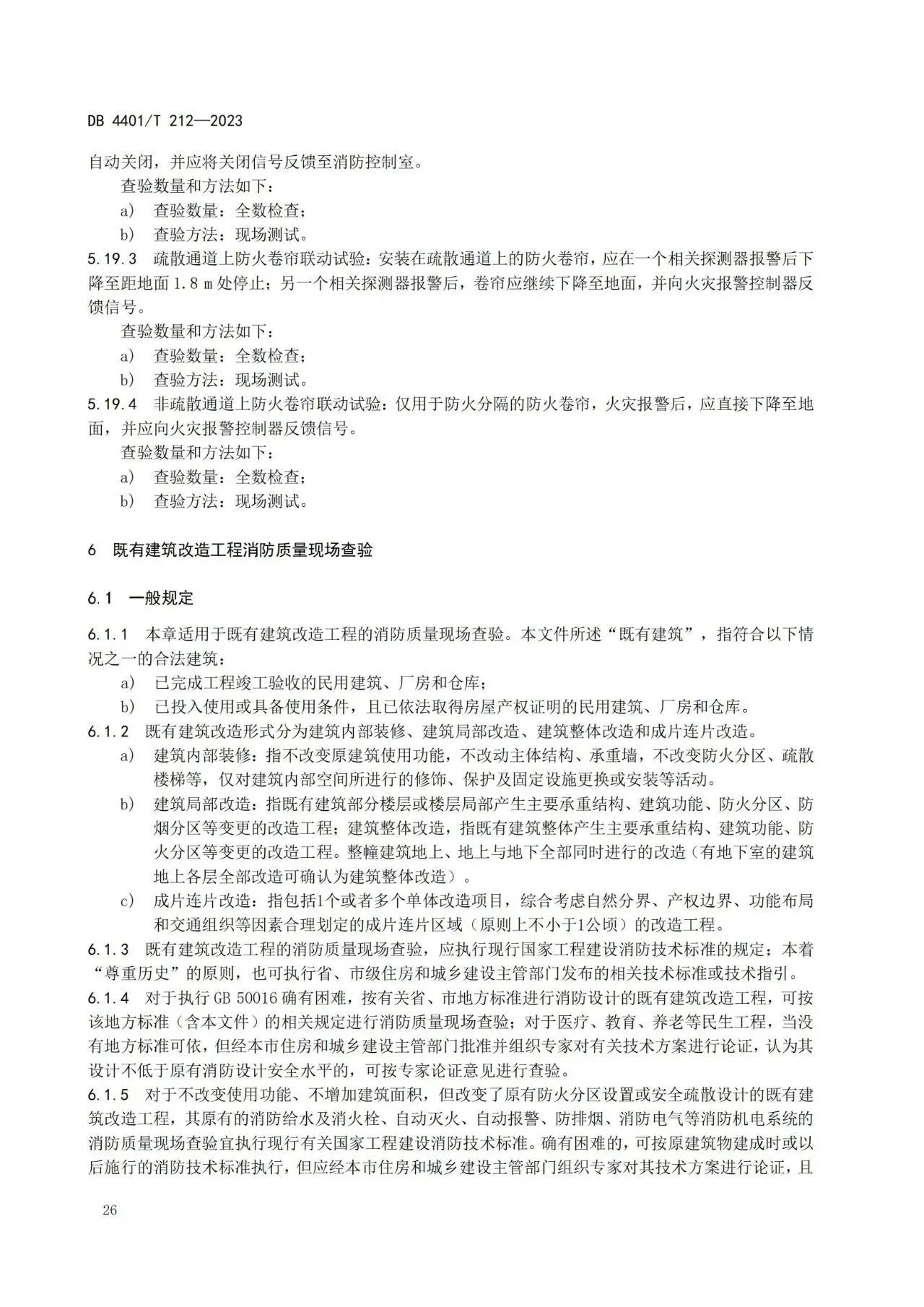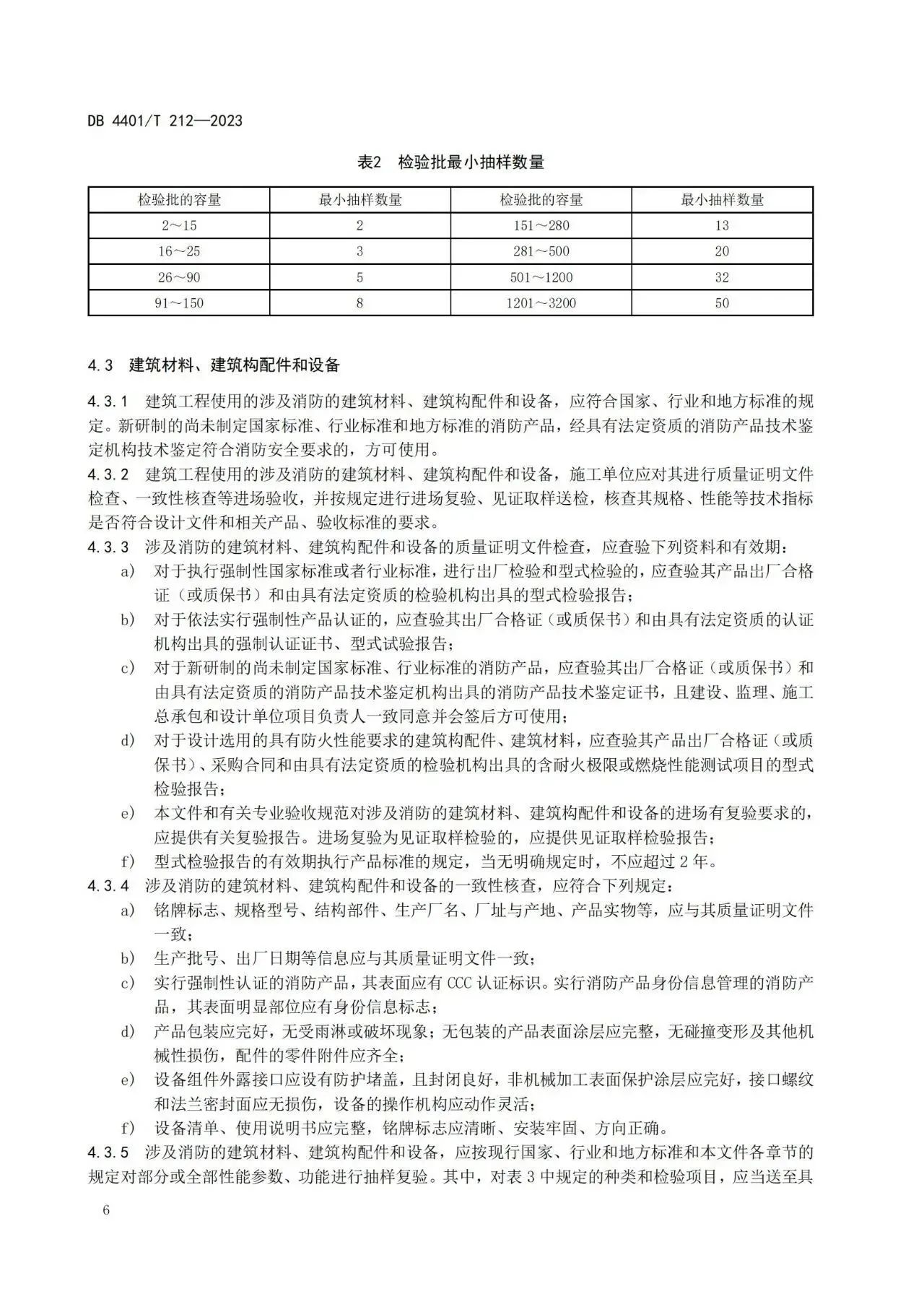 第一,遵循广东省标准《建筑工程消防施工质量验收规范》(DBJ/T15-248-2022)的一般规定,划分了涉及消防的分部分项工程,完善了消防检测要求,从而将消防质量验收内容纳入到现有建筑工程质量验收技术体系,为各方责任主体实施消防施工质量过程控制提供了依据。