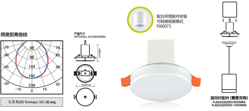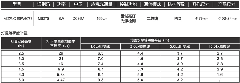 M6073(M-ZFJC-E3W6073)集电集控3寸嵌入式全面发光筒灯/常亮(色温:6500K)