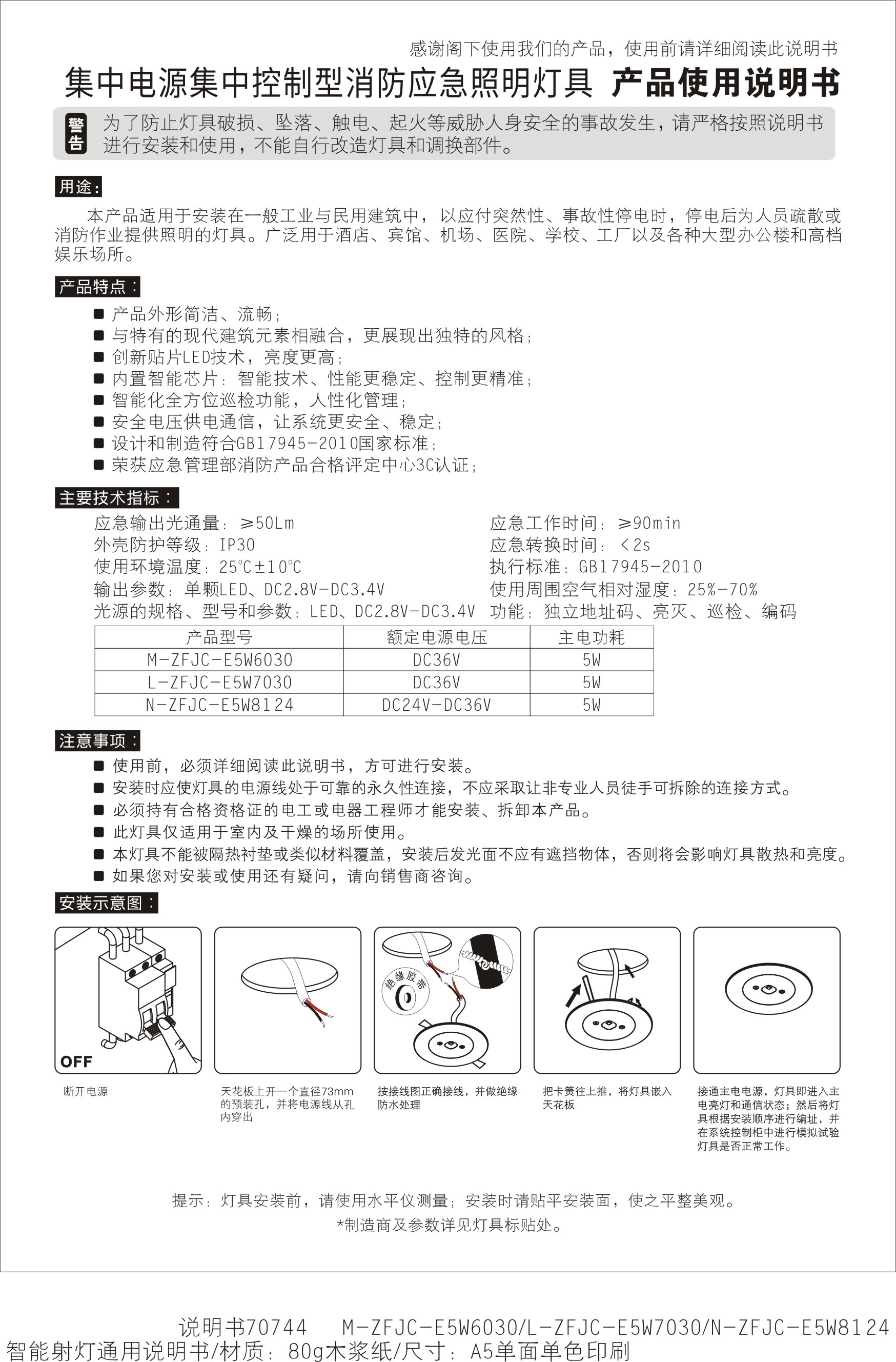办公室、住宅、医院、学校等(安装于层高≤44.5M的天花顶 )