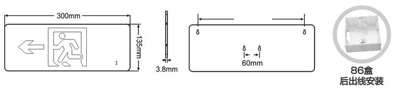 【材质】拉丝无指纹亮油不锈钢 【防护等级】IP30 【安装方式】吸墙式 【额定电压】DC36V 【主电功耗】0.5W 【LED光源】高亮、低功耗LED 【外形尺寸(长×宽×厚)】353*135*3.8mm 【安装孔距】300mm 【包装数量】30台