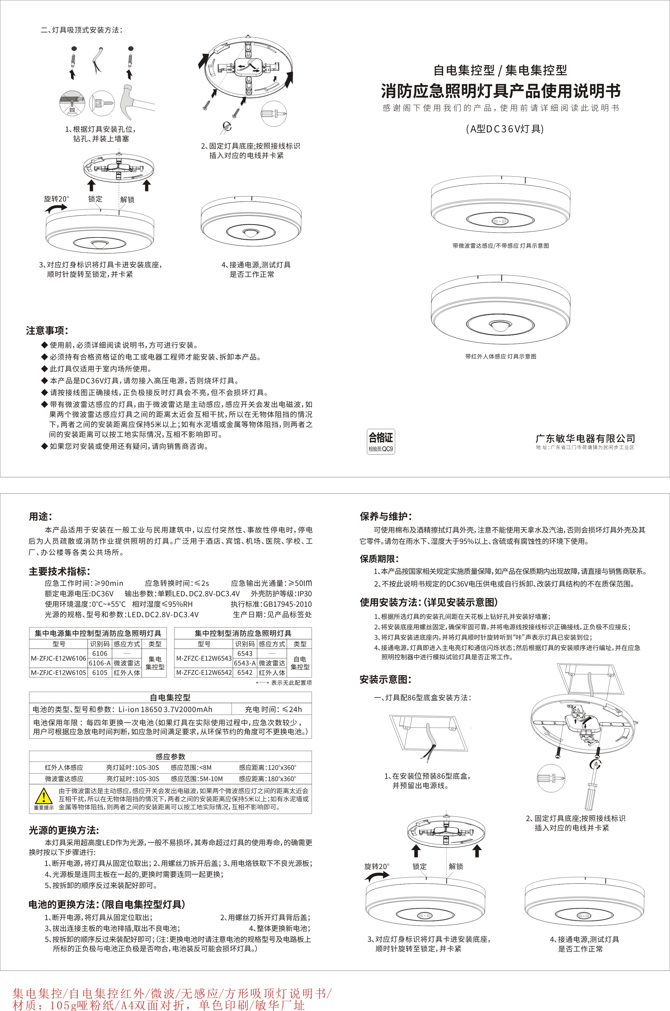| 【材质】防火塑料 【防护等级】IP30 【安装方式】吸顶式 【额定电压】DC36V 【主电功耗】12W 【LED光源】高亮、低功耗LED 【光通量】≥1890Lm 【感应方式】微波感应 【色温】6500K 【外形尺寸(直径×高)】Ф180*43mm 【包装数量】20台 | 【材质】防火塑料 【防护等级】IP30 【安装方式】吸顶式 【额定电压】DC36V 【主电功耗】12W 【LED光源】高亮、低功耗LED 【光通量】≥1885Lm 【感应方式】人体感应 【色温】6500K 【外形尺寸(直径×高)】Ф180*52mm 【包装数量】20台